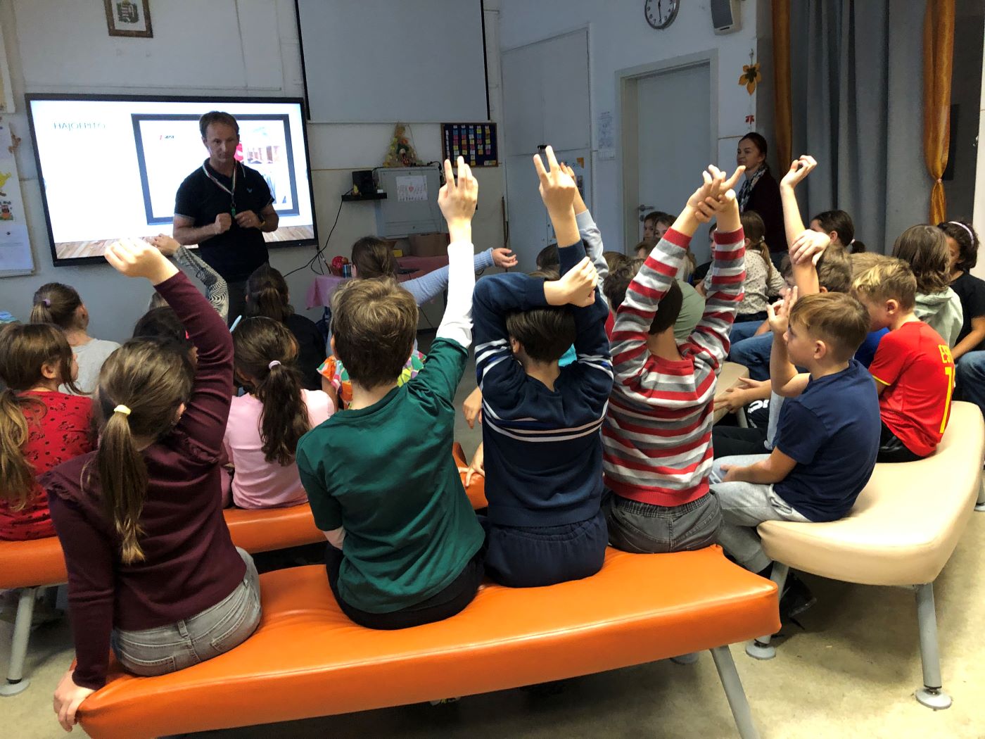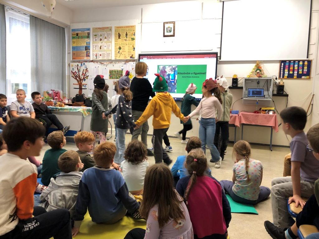 Zentai-Pénzes Zsuzsanna óvónő egy interaktív foglalkozást tartott iskolánkban az 1. és a 2. évfolyam részére. A gyerekek bevonásával mutatta be az óvodapedagógus sokrétű, színes munkáját és e hivatás szépségeit. Volt közös ének, bábozás és szerepjáték is, mely során a gyerekek örömmel gondoltak vissza az óvodában töltött évekre.