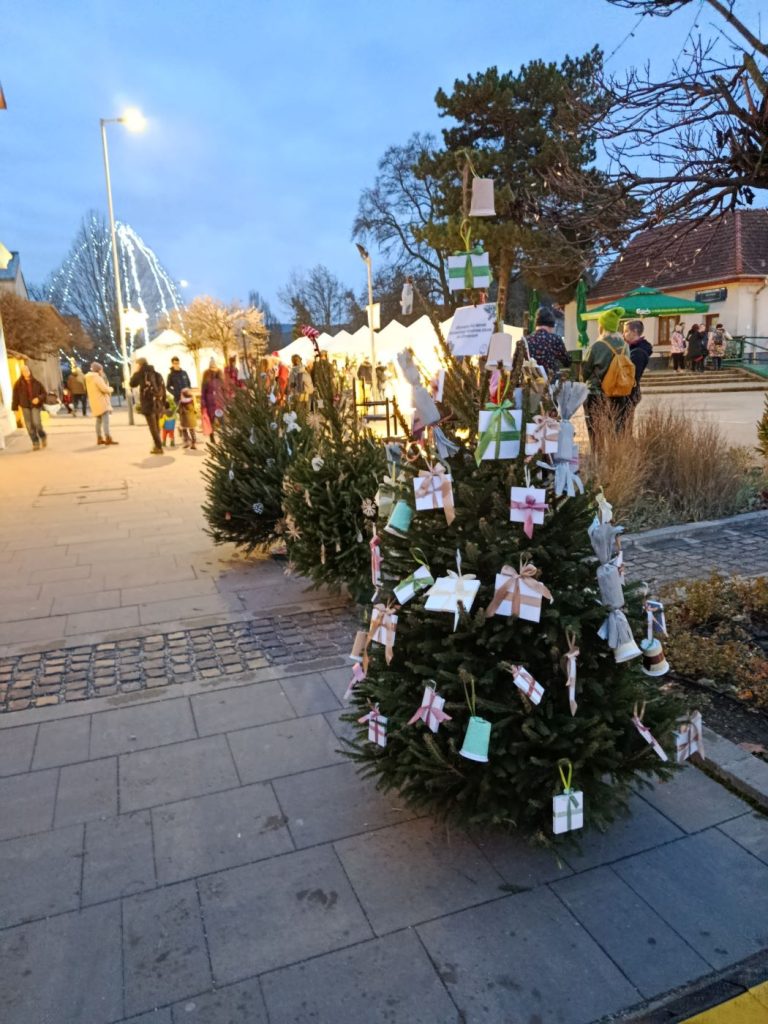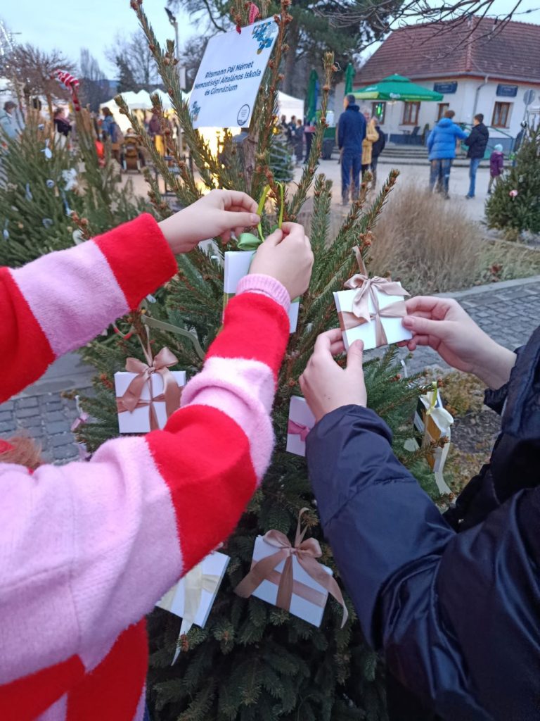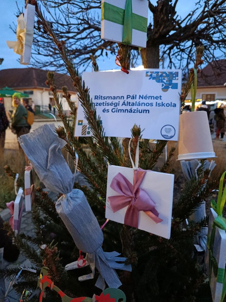 A városi Angyalfia vásár új programja a fenyőfadíszítés volt, melyre ötletes újrahasznosított díszeket készítettünk rajzórákon. Felhasználtunk szalagdarabokat, műanyag poharakat, egyéb leeső hulladékot. Fontos, hogy karácsony közeledtével is felhívjuk a figyelmet a környezettudatosságra.