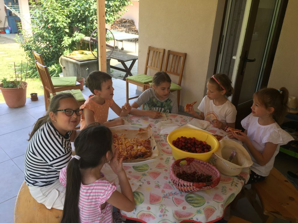 Az utolsó napot kötetlen formában töltötték el a 3. a osztályos tanulók. Osztályfőnökük meghívására érkeztek a csendes utcácskában álló házukhoz, de hamar gyerekzsivajtól lett hangos a környék. A délelőtt folyamán együtt játszottak, tollaslabdáztak, pingpongoztak a gyerekek. Cseresznyeszüret és pizzasütés tette teljessé a napot. Kedves aszfaltrajzok is készültek, ami mosolyt csalt az arra járók arcára.