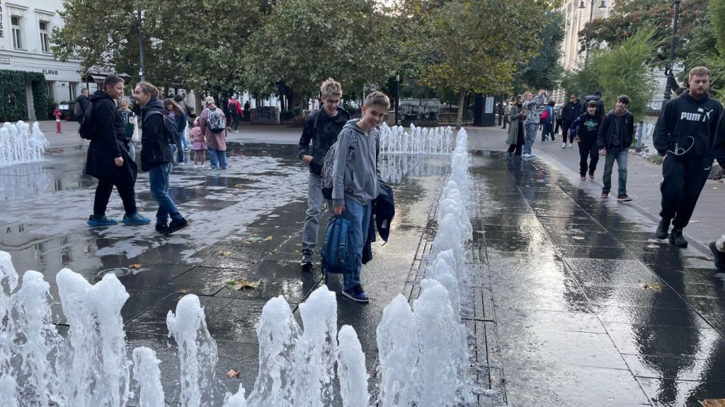 Majd a Szabadság térre látogattunk és ott megtekintettük a Holokauszt áldozatainak emléktárgyait , valamint egy kis vidám pancsolás következett a téren lévő interaktív szökőkútnál.