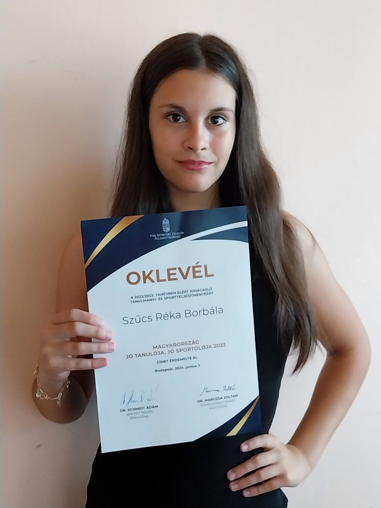 A 2022/23. tanévben elért kimagasló tanulmányi-és sportteljesítményéért Szűcs Réka Brobála (8.a) Magyarország jó tanulója, jó sportolója címet érdemelt ki. Gratulálunk